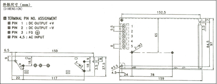 注:1、以上參數測試條件為:230VAC輸入,額定負載,25℃ 70% RH.濕度。 2、容差:包括設定容差,線路穩定度,負載穩定度(注5)。 3、紋波測試:20MHz 用A12"雙絞線,中斷用0.1uF&47uF電容器短路。 4、進線電壓穩定度測試:滿負載時進線最低電壓到最高電壓。 5、負載穩定度測試:負載從0%到100%。